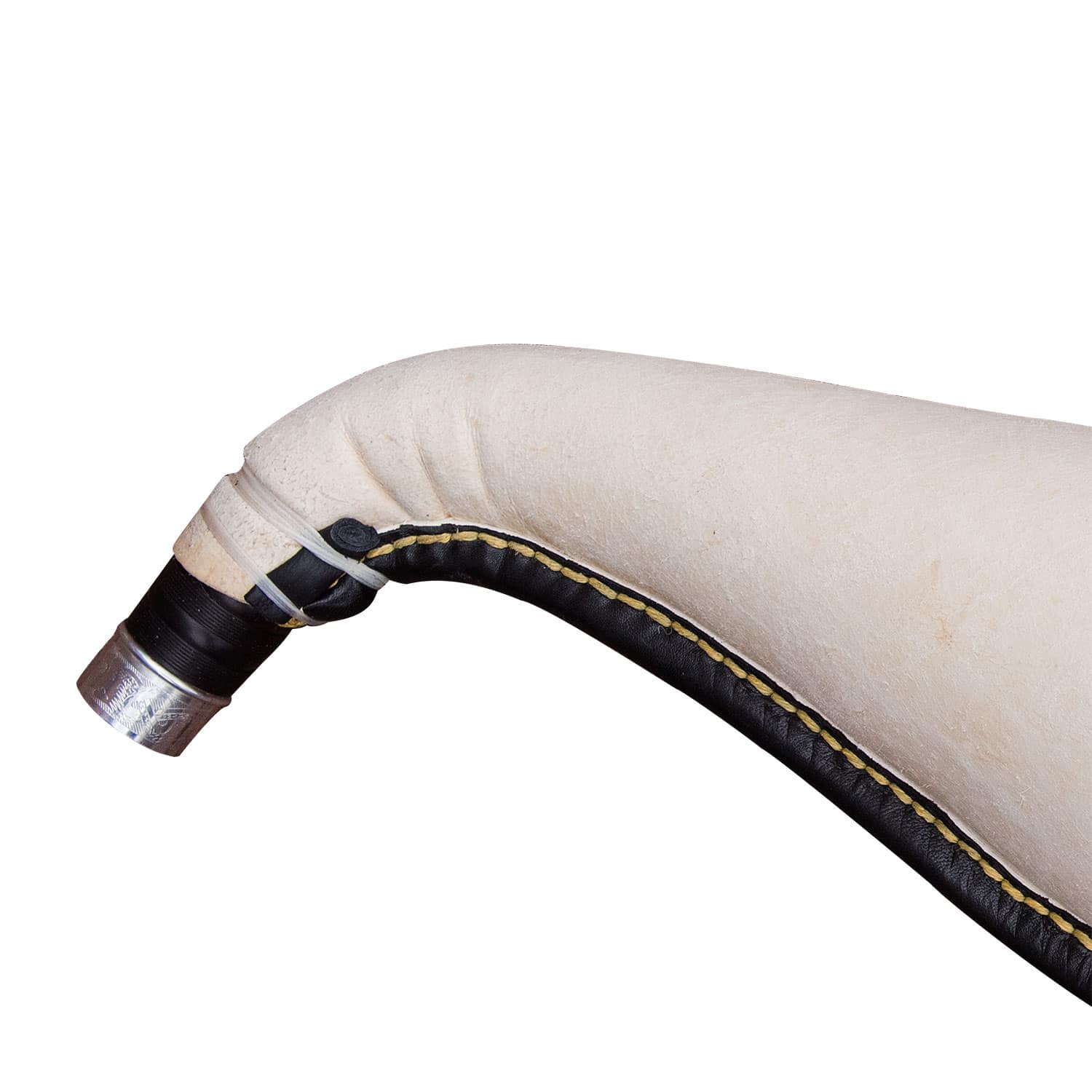 Swan Neck (Schwanenhals): Der Chanter-Anschluss ist leicht geschwungen, ähnlich einem Schwanenhals, und tritt in einem gewinkelten Verlauf aus dem Bag aus. Diese Form ermöglicht eine verlagerte oder ergonomischere Chanter-Position, oft leicht weiter vom Körper entfernt. Besonders vorteilhaft für Spieler, die eine entspanntere oder individuell angepasste Spielhaltung bevorzugen – z. B. bei längeren Armen oder größerem Körperbau.